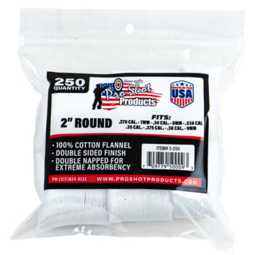 Pro-Shot's cleaning patches provide Maximum Cleaning Power and Barrel Protection! Clean Faster, Easier, and Protect your barrel with Pro-Shot 100% Cotton flannel patches