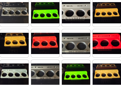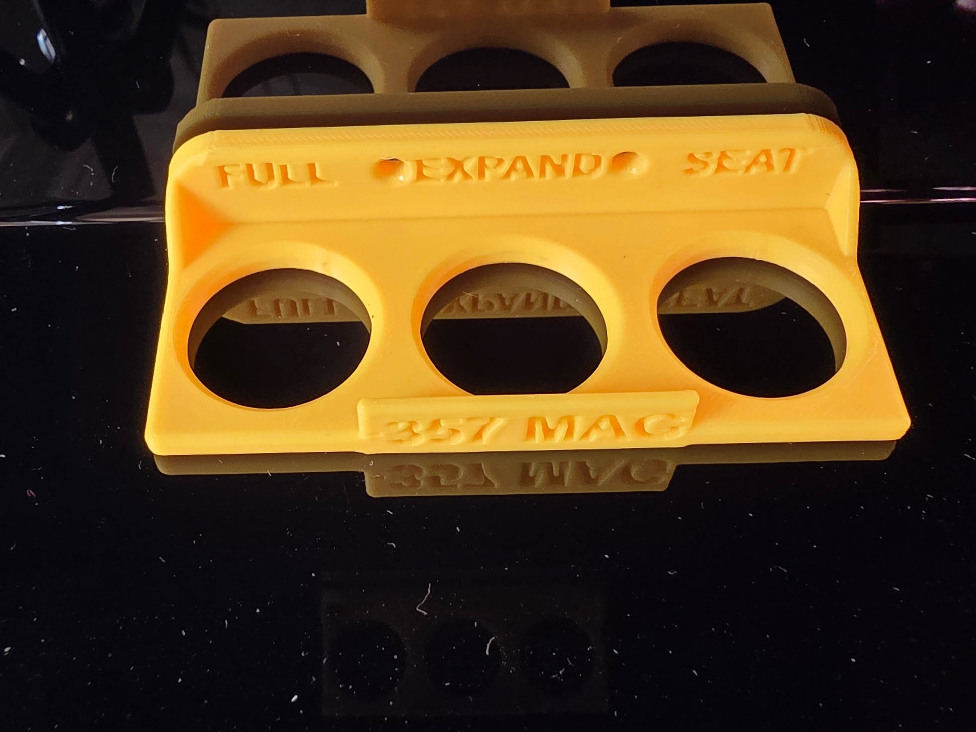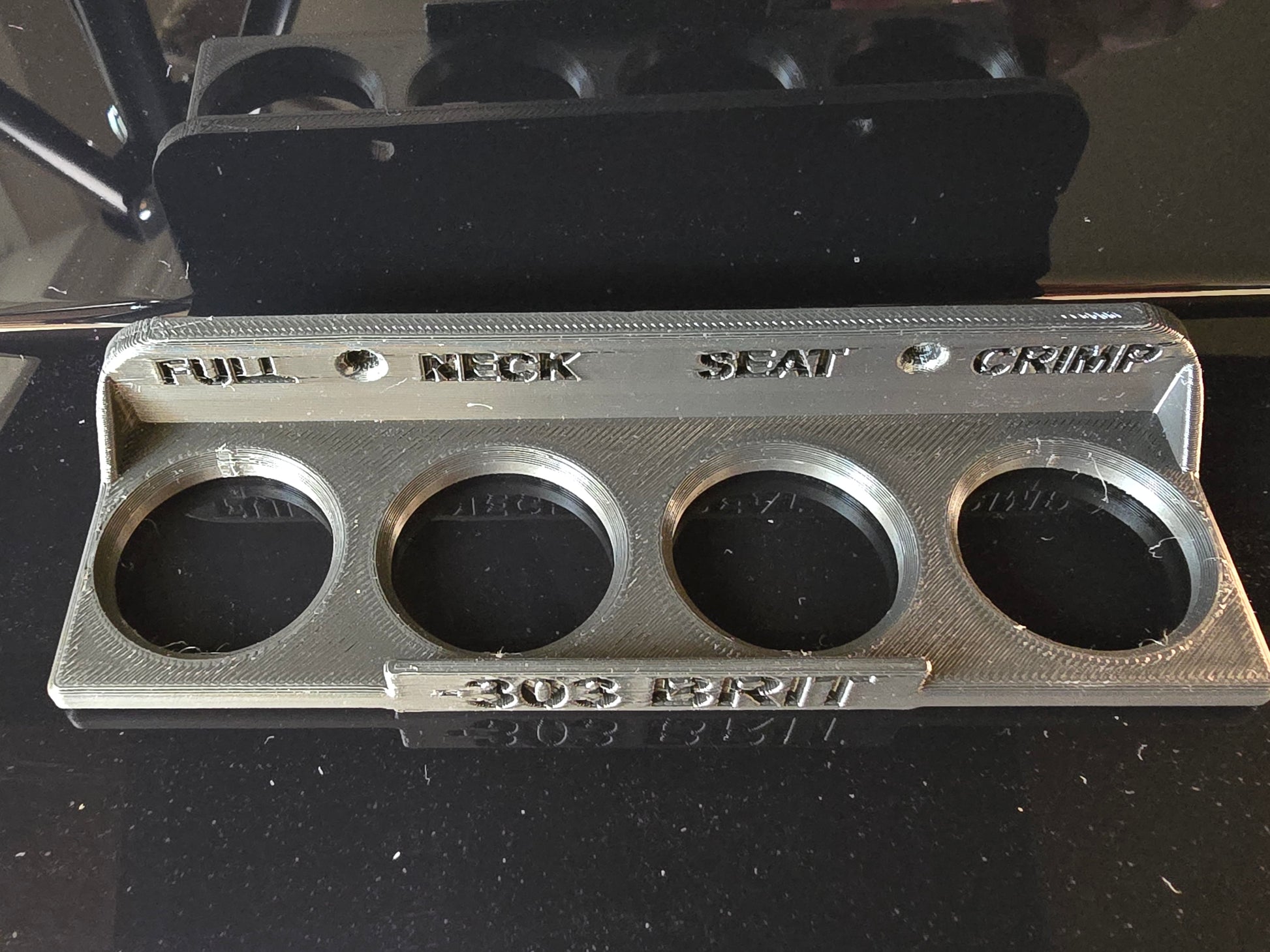 3D Printed Reloading Die Set Holders, Calibre clearly marked for quick identification.