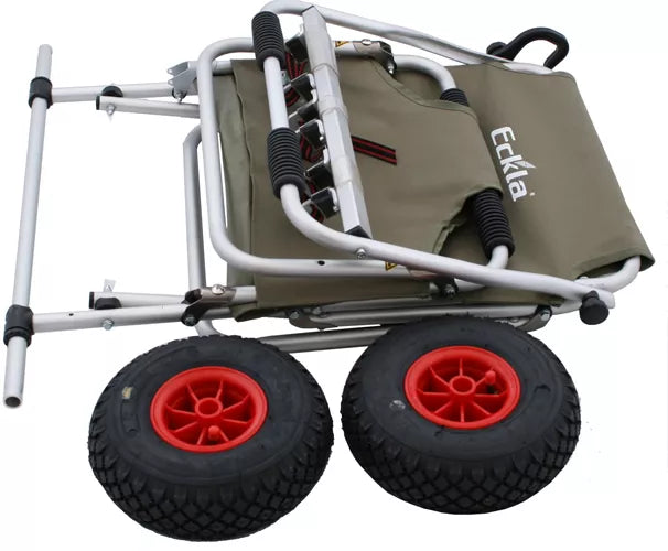 This sturdy, yet lightweight cart folds down flat and the wheels are easily removed for transport in the boot of any car. A carry bag is included to store the wheels, in case they are wet or muddy.