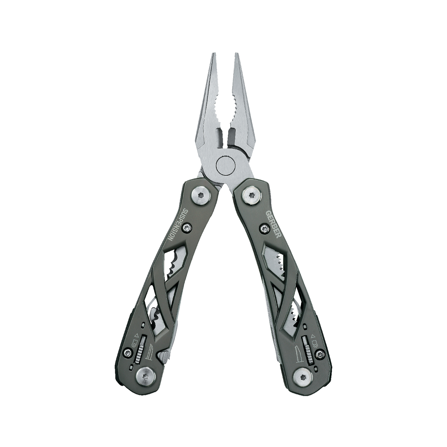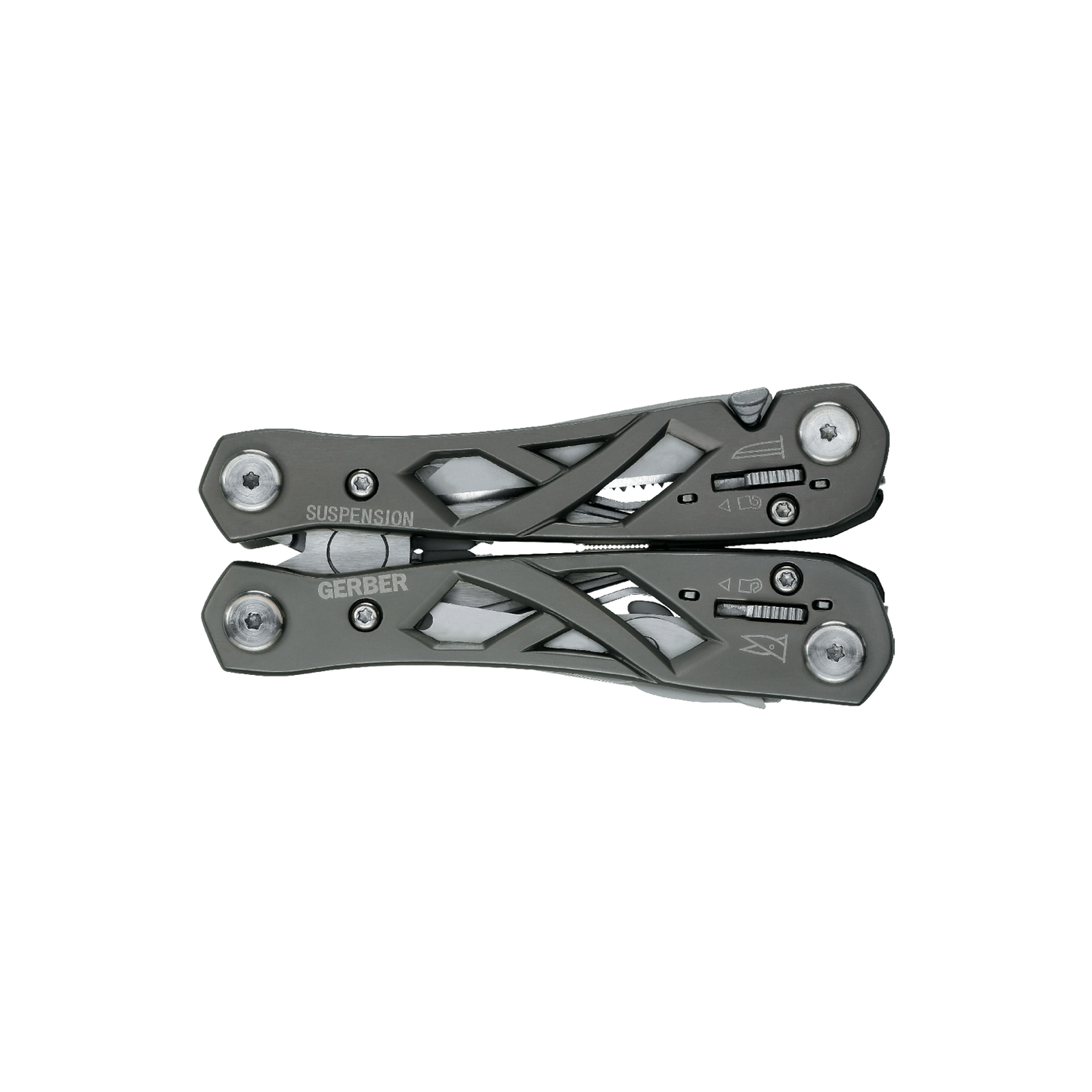 Inspired by the bridges of Gerber’s hometown in Portland, Oregon, the Suspension is an open frame multitool with spring-loaded pliers, our SAF.T.PLUS locking system, a fine-edge knife, serrated knife, rough cut saw and more. Housed in a ballistic nylon sheath, it’s a lightweight down-and-dirty workhorse.