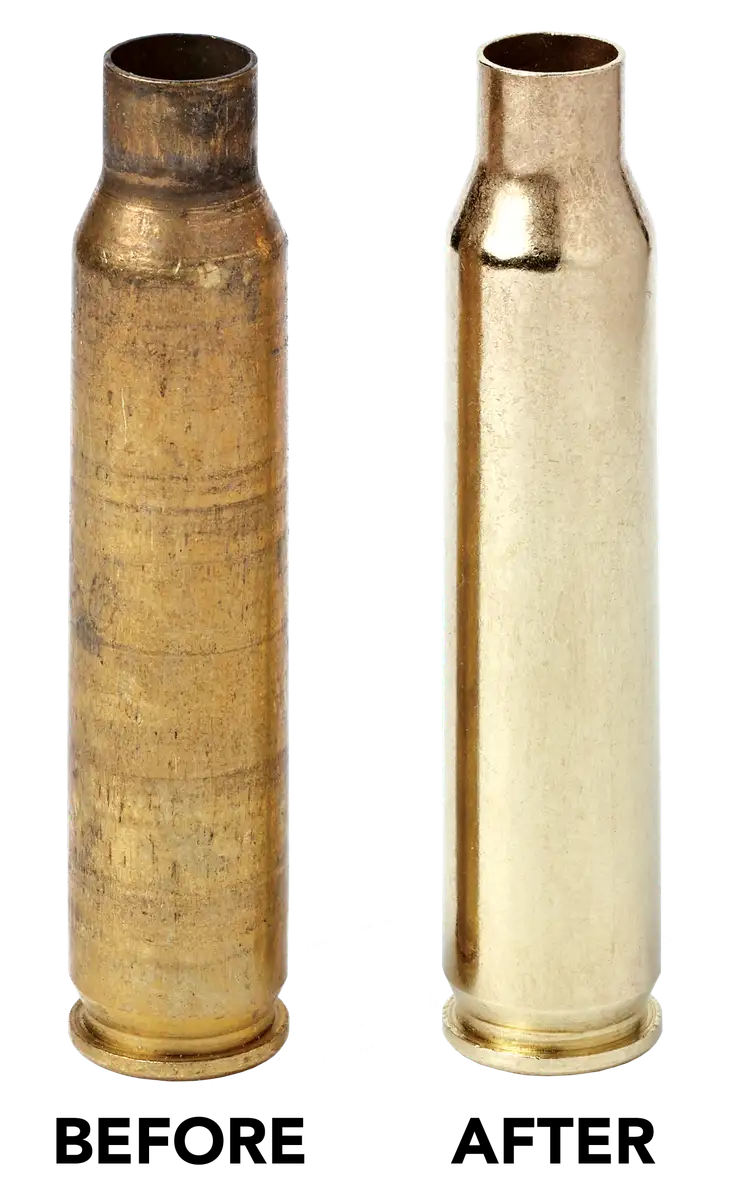 Clean and polish brass cartridge cases to a brilliant shine with the rotary action of this tumbler, coupled with its steel pin tumbling media (included).