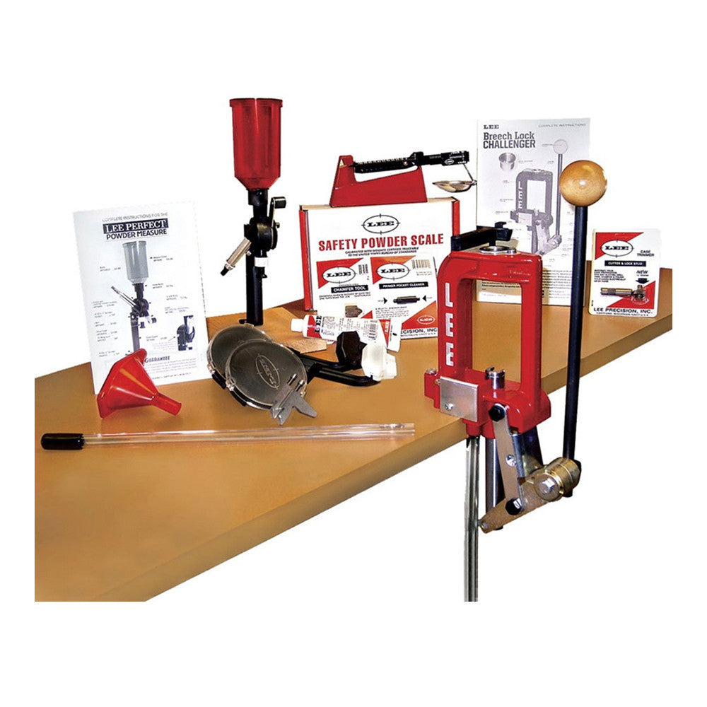 Includes the new Breech Lock Challenger Press and one Breech Lock quick-change bushing. You get a complete powder handling system, with the most convenient and repeatable Perfect Powder Measure. Plus the Lee Safety Scale, the most sensitive and safest of all powder scales and fill your case with the included Powder Funnel.