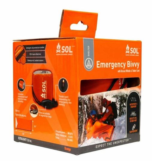 • S.O.L. emergency bivvy reflects 90% of body heat to prevent heat loss and